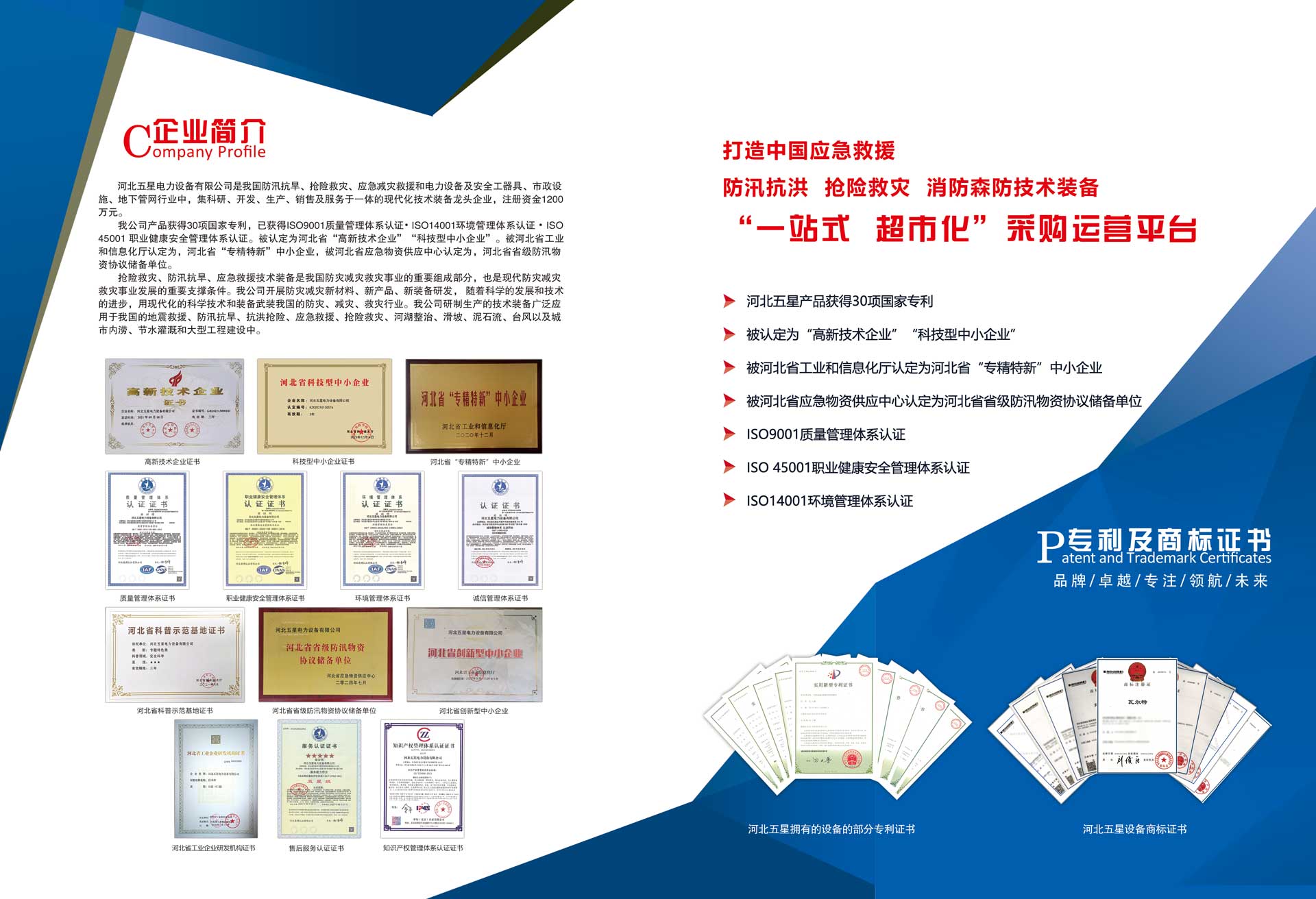 河北五星電力設(shè)備有限公司是我國(guó)防汛抗旱、搶險(xiǎn)救災(zāi)、應(yīng)急減災(zāi)救援和電力設(shè)備及安全工器具、市政設(shè)施、地下管網(wǎng)行業(yè)中,集科研、開(kāi)發(fā)、生產(chǎn)、銷(xiāo)售及服務(wù)于一體的現(xiàn)代化技術(shù)裝備高新技術(shù)企業(yè),注冊(cè)資金1200萬(wàn)元。  我公司產(chǎn)品已獲得ISO9001質(zhì)量管理體系...